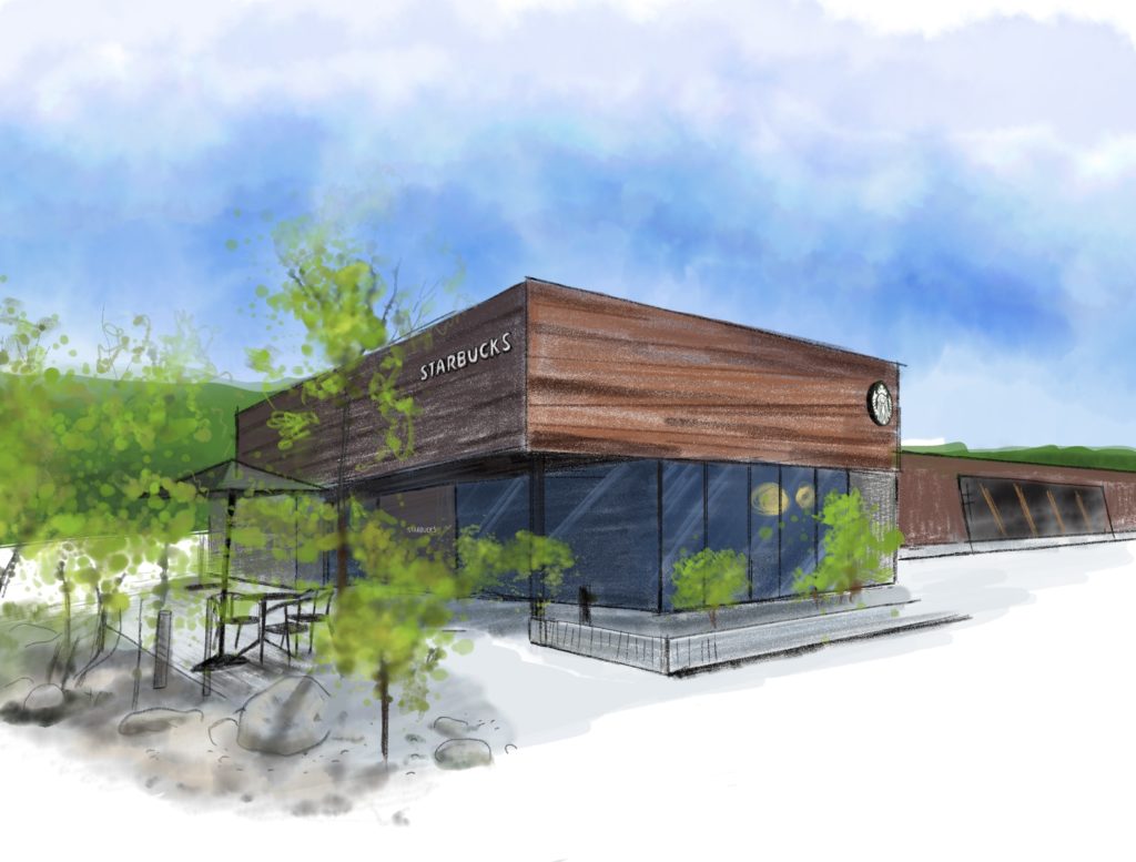 イラストは最近地元にできたStarbucks!こんな田舎町にスタバが出来るなんて!